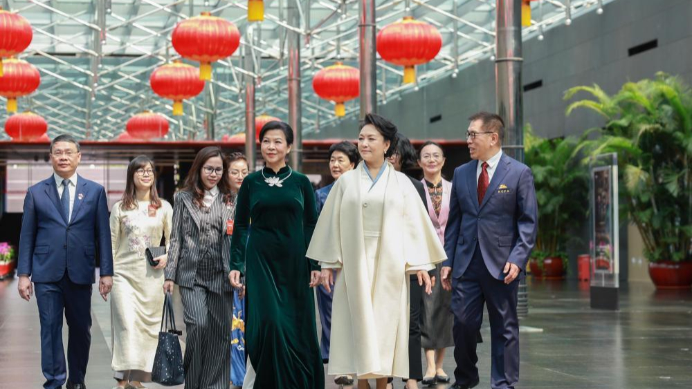 Phu nhân Tổng Bí thư, Chủ tịch Trung Quốc Bành Lệ Viên cùng phu nhân Tổng Bí thư, Chủ tịch nước Việt Nam Ngô Phương Ly tham quan Nhà hát Lớn Quốc gia Trung Quốc