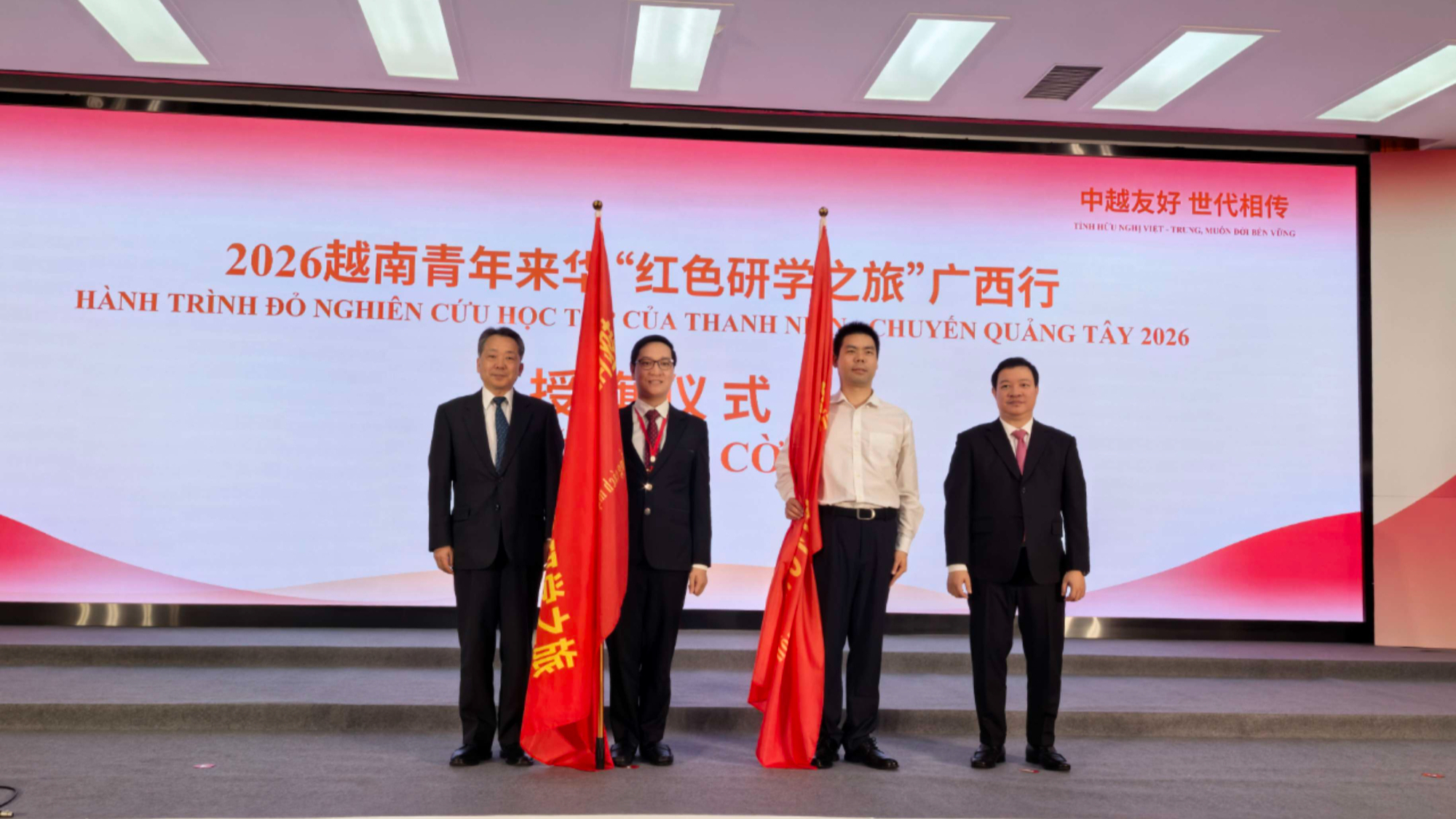 Lễ trao cờ “Hành trình đỏ nghiên cứu, học tập” của thanh niên Việt Nam ở Trung Quốc diễn ra tại Quảng Tây Trung Quốc